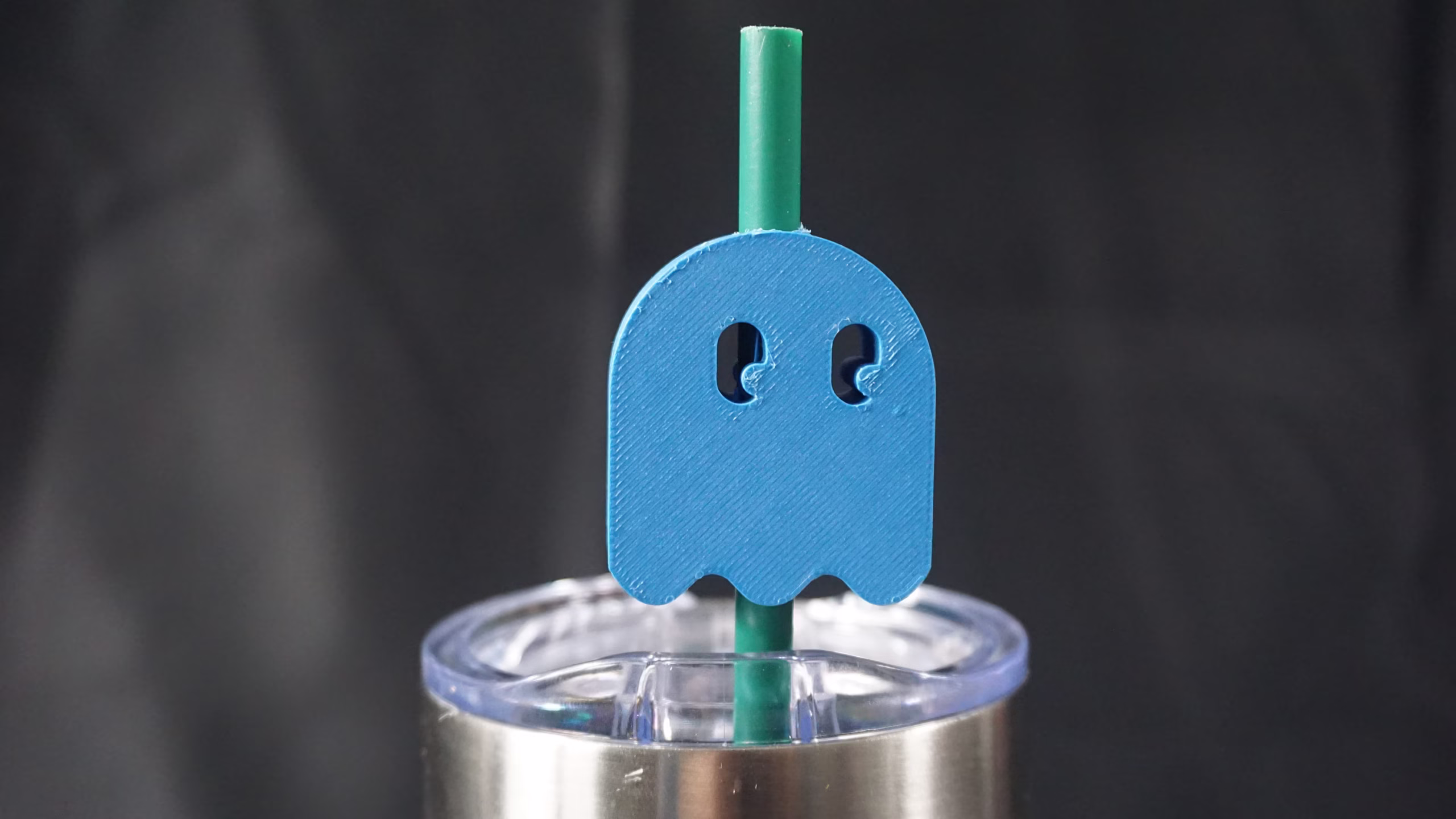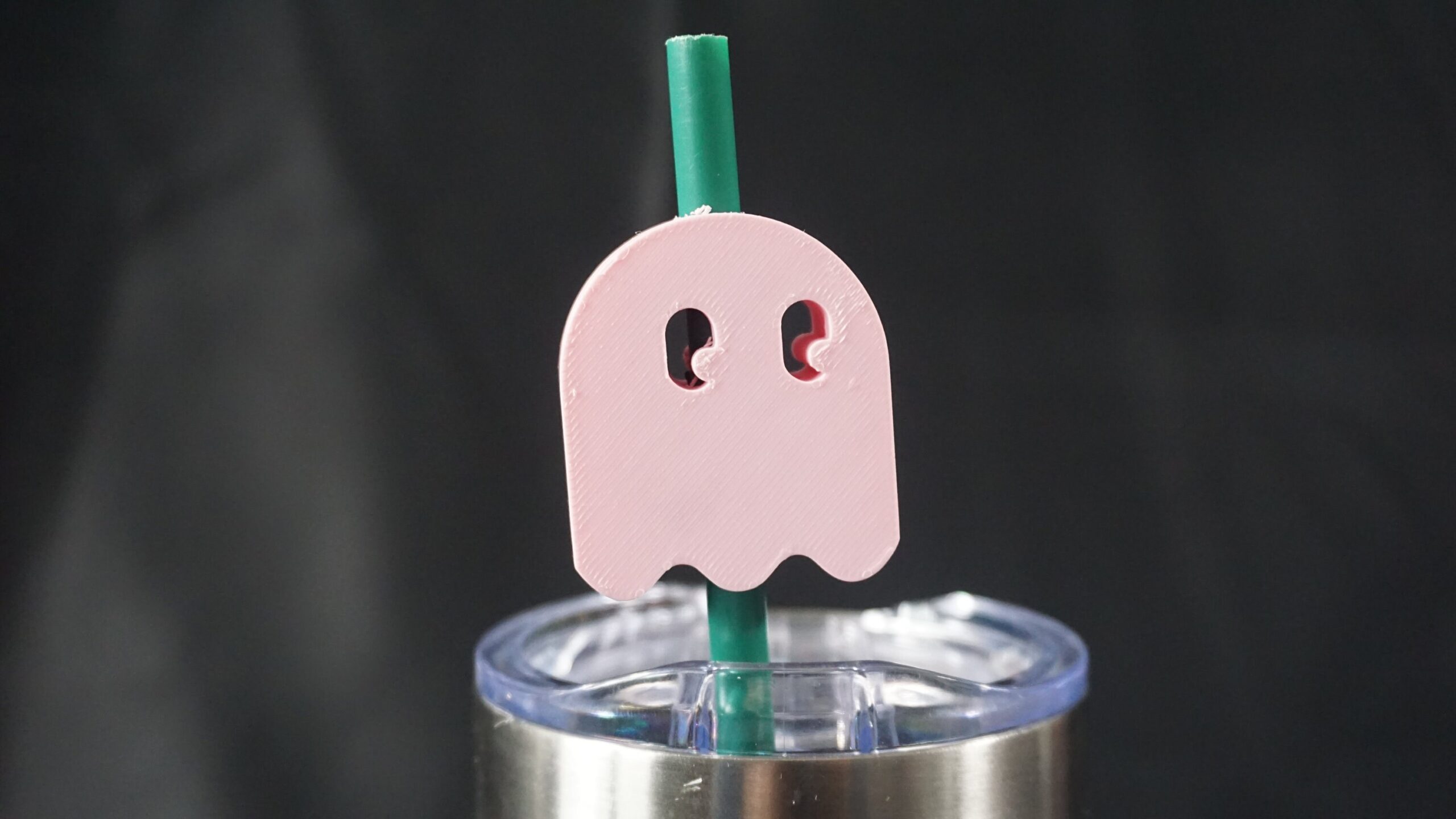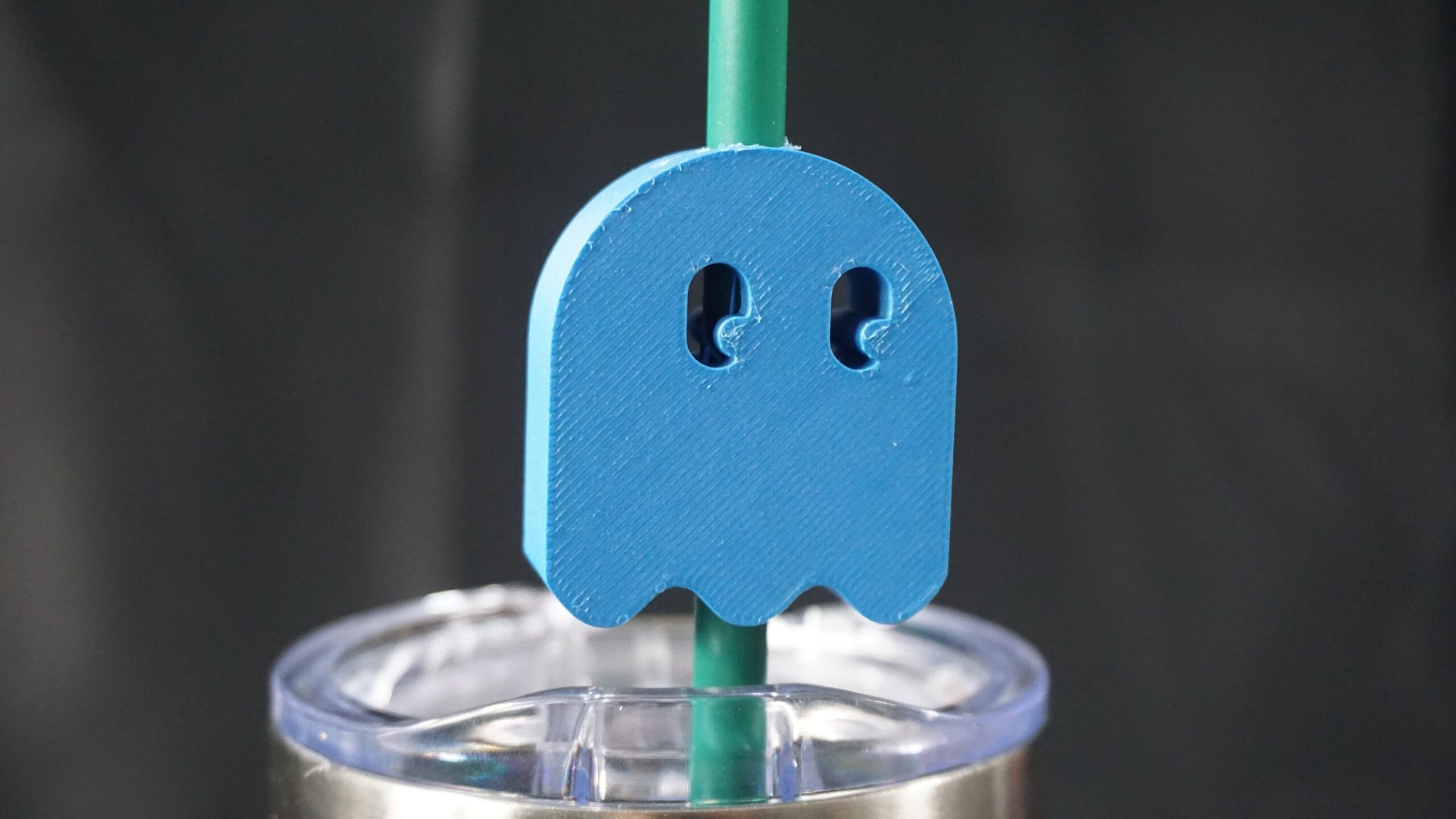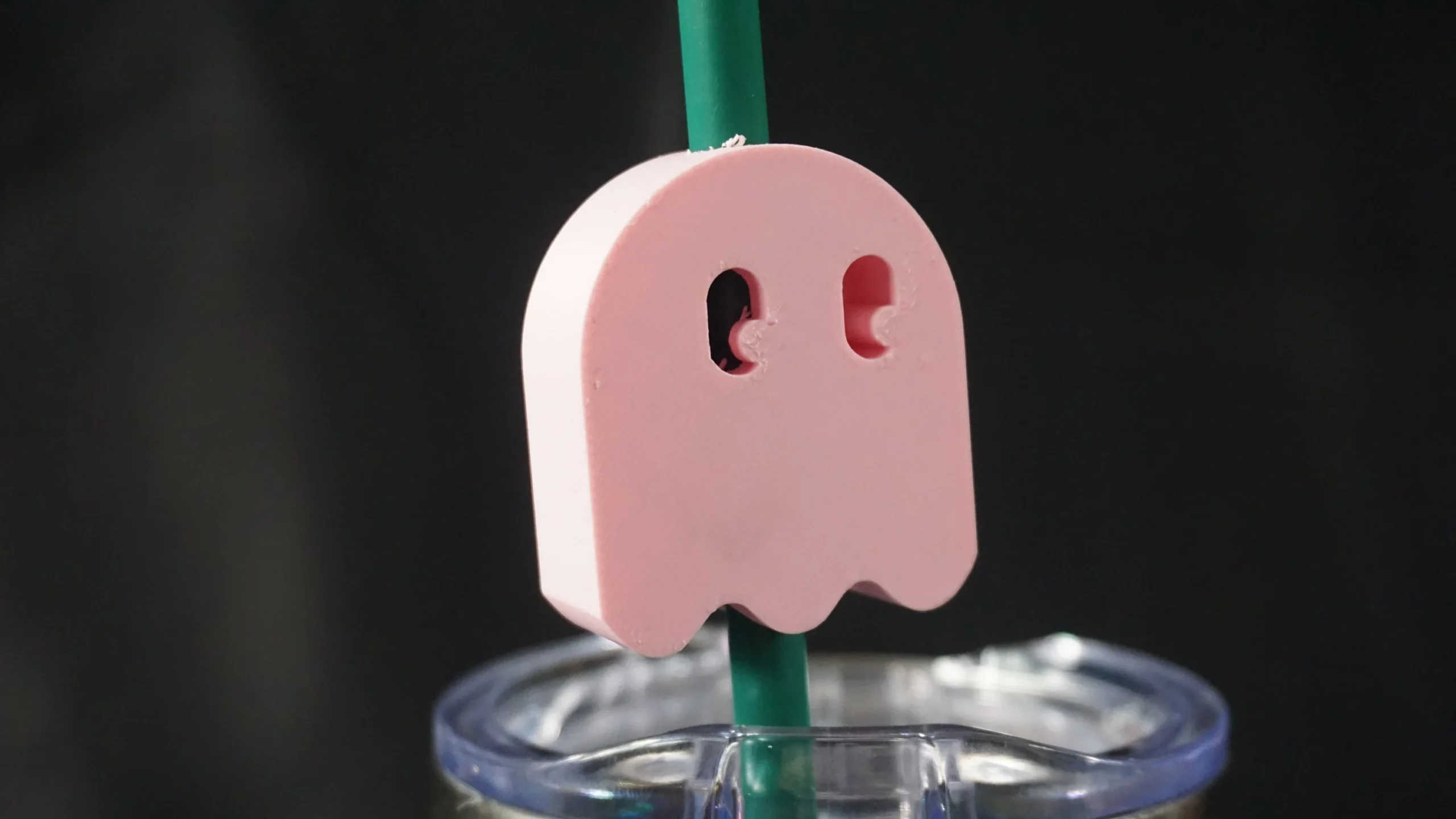 This is a 3D printed straw topper of pacman’s ghost!! 3D printed at home by me, for a decorative touch to your drink. Great for children, friends, family, and partners who love Pacman! Straw topper fits straw with an outer diameter of .24 inches.