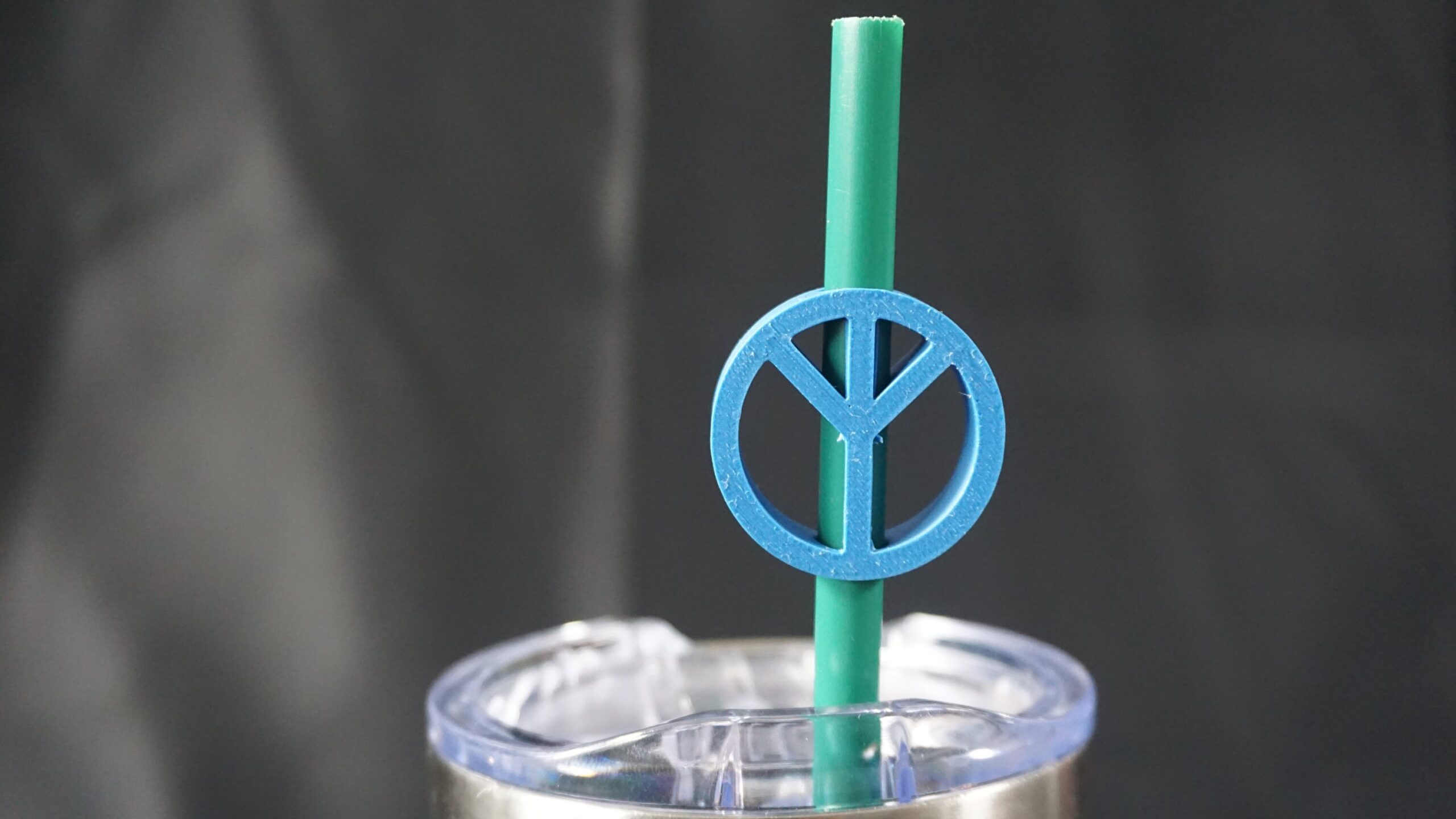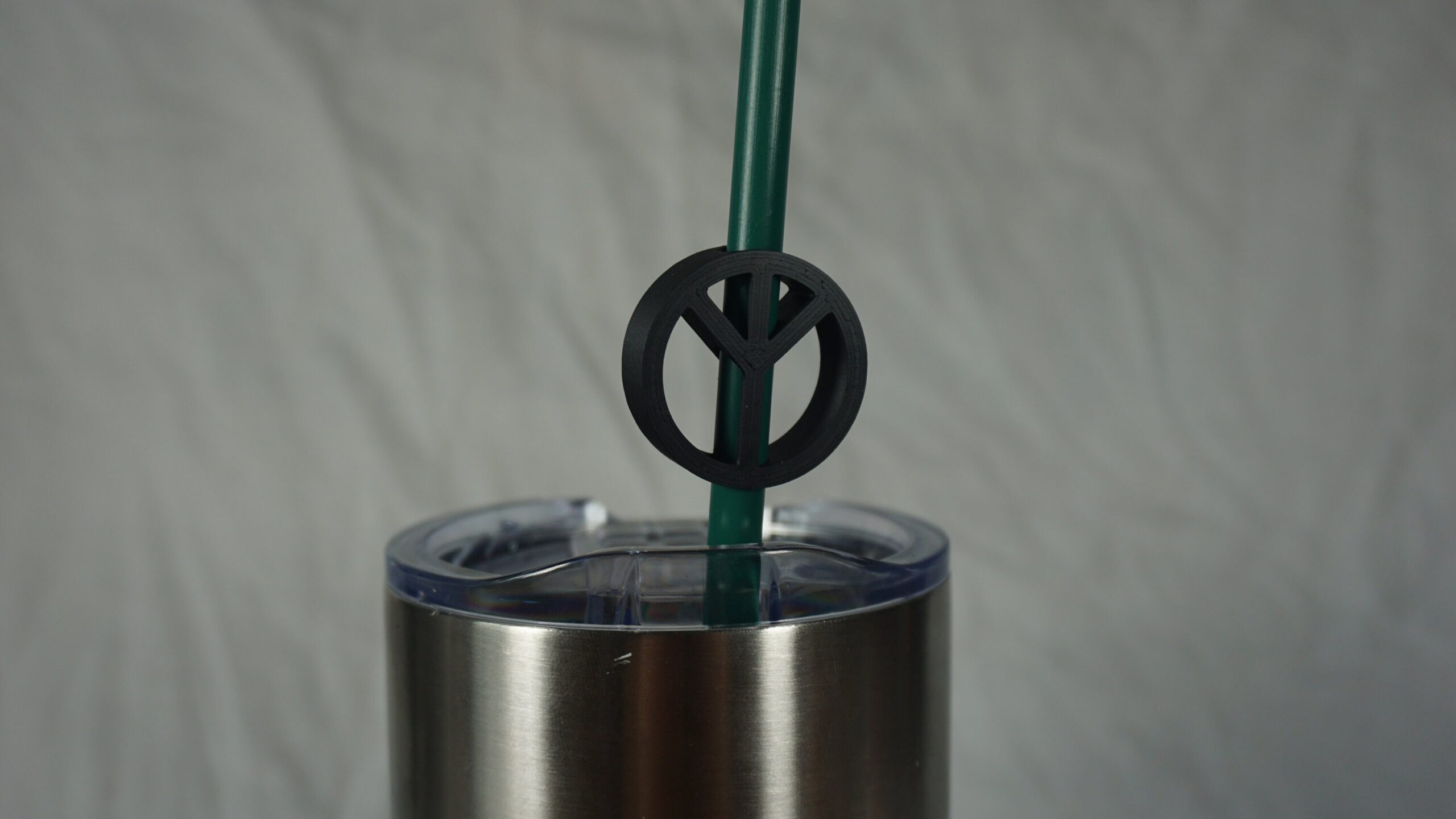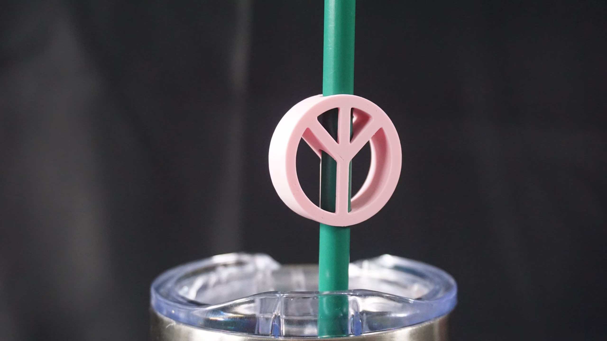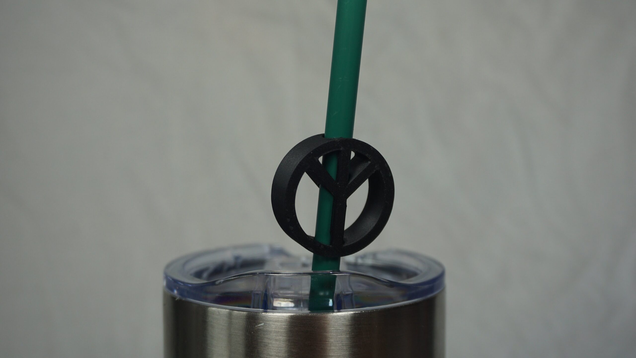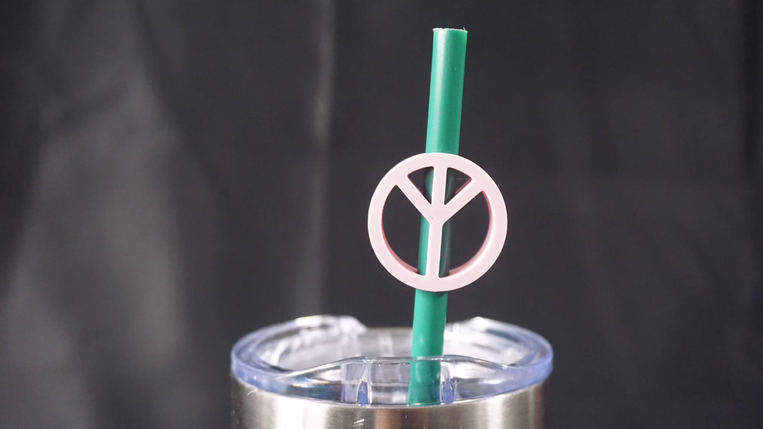 This is a straw topper sold in a pack of three. It is a peace sign – great for a birthday party, your hippie friends, or just enjoyable drinking! Straw topper fits straw with an outer diameter of .24 inches.