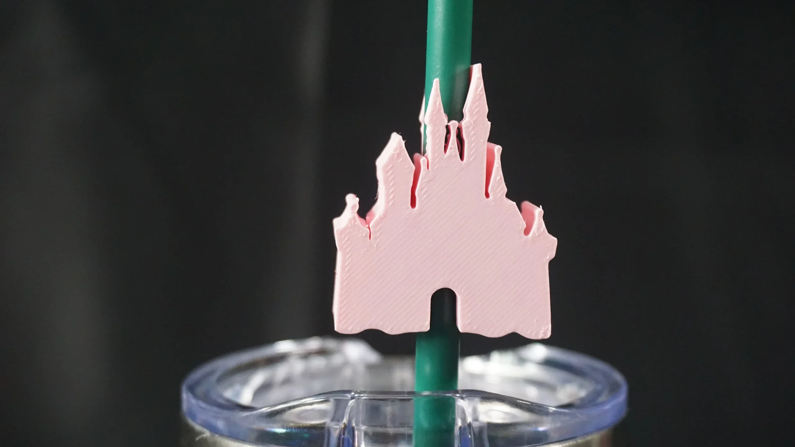 A straw topper shaped as a princess’ castle! Perfect for Disney fans, children, party favors, and fun drinking experiences! Made for a straw with an outer diameter of .24 inches.
