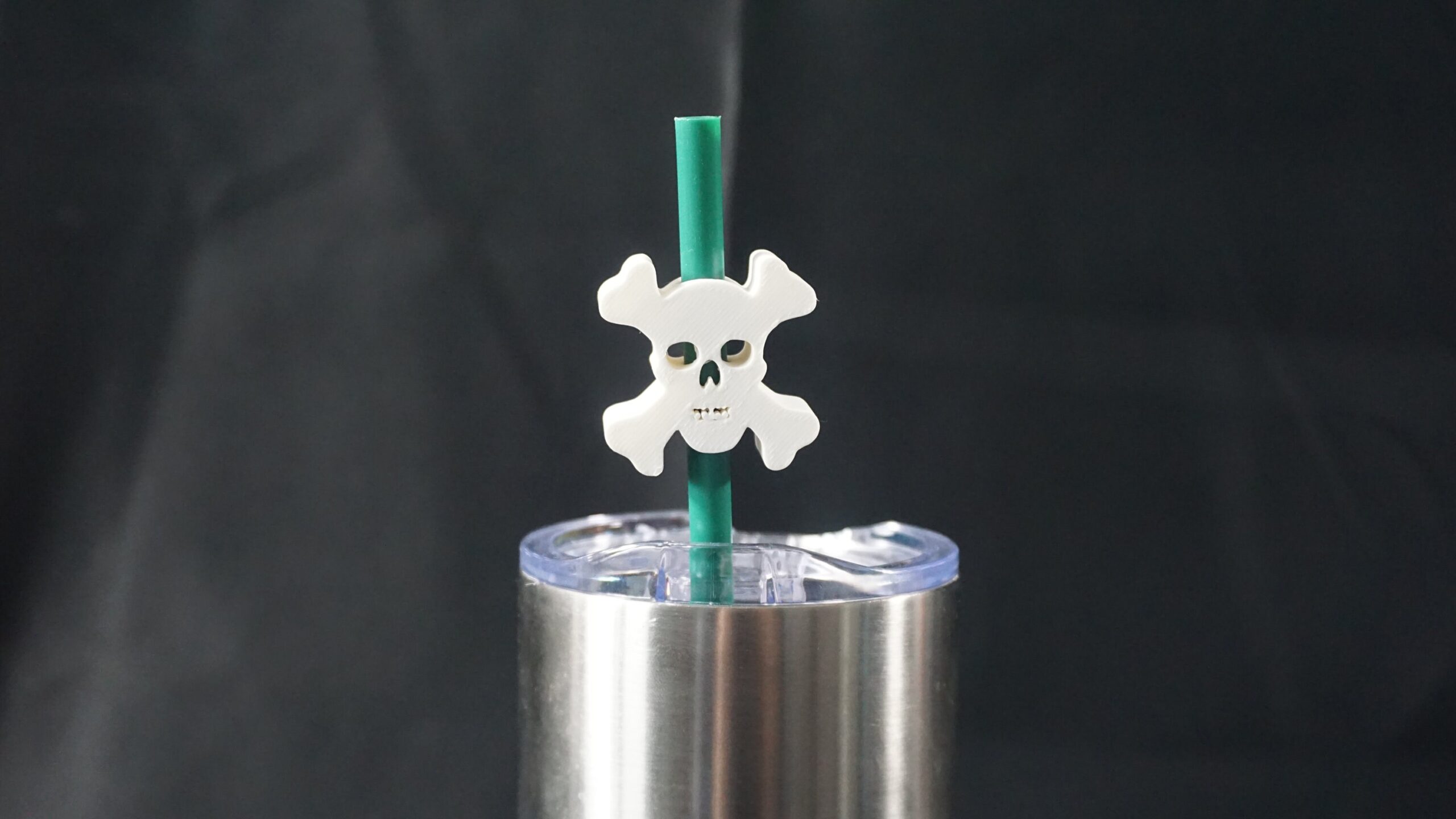 This is a fun 3D printed straw topper, it was modeled and printed by me! It is a skull and crossbones, perfect for Halloween, a themed party, and just casual drinking enjoyment. It will pair perfectly with your favorite cup or mug! Straw topper fits straw with an outer diameter of .24 inches.